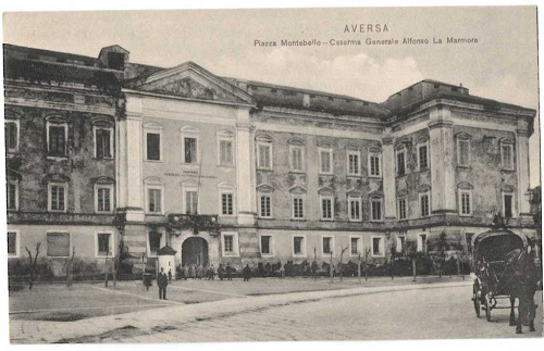 Una veduta del Castello Aragonese di Aversa, l’attuale scuola di Polizia penitenziaria, com’era all’inizio del secolo scorso, la cartolina è tratta dalla collezione del nostro direttore Salvatore Pizzo