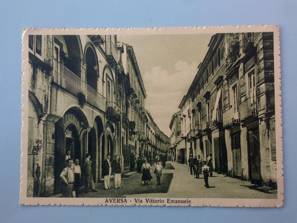 Aversa, Vittorio Emanuele (vista da Via Roma), cartolina degli anni ’40 del secolo scorso – Civica Raccolta Pizzo (proprietà Salvatore Pizzo, curatrice Ester Pizzo)