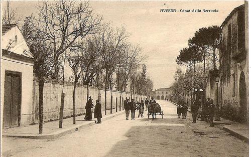 Cartolina della Civica Raccolta Pizzo (proprietà Salvatore Pizzo, curatrice Ester Pizzo), Aversa, Corso della Ferrovia, attuale via Diaz, inizi del ‘900.