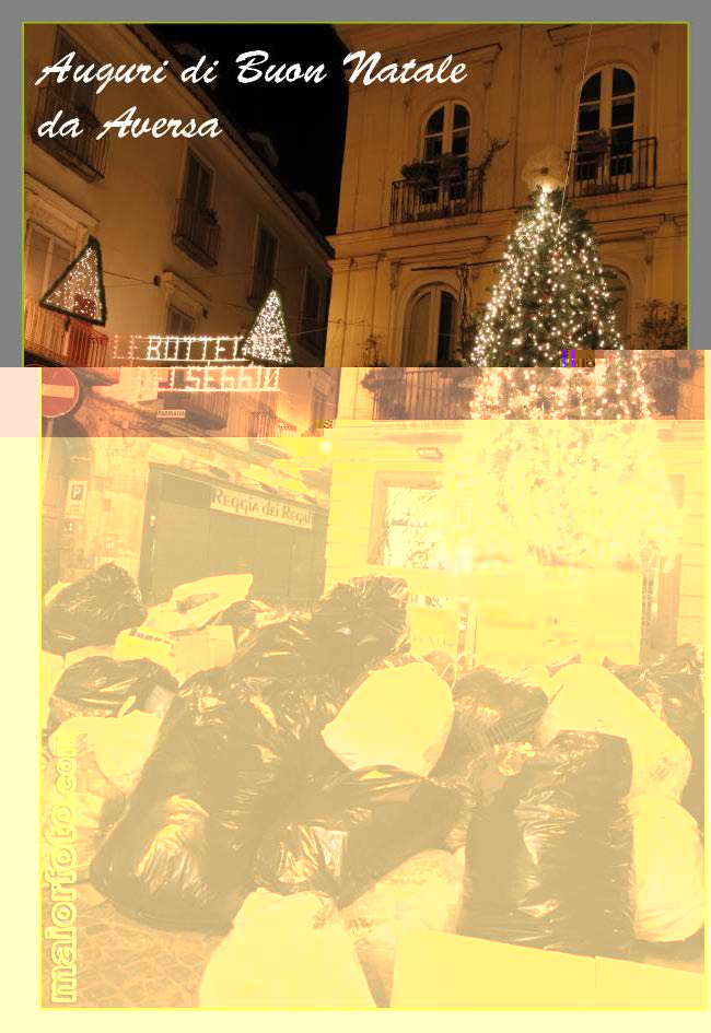 Questi giorni di emergenza rifiuti hanno fatto in modo che molti cittadini cadessero in preda di un’autentica assuefazione visiva, di fronte alle montagne di spazzatura che stanno ricoprendo le nostre strade. Per far riflettere sul degrado e la vergogna che ai nostri occhi sta diventando normalità, i fotografi Edoardo Ciardiello e Giuseppe Panza, hanno voluto documentare con dei crudeli e realistici scatti una situazione ormai al collasso, nellauspicio anche di sensibilizzare i vertici istituzionali. Delle cartoline natalizie di Aversa coperta dai rifiuti, che hanno avuto anche la loro ribalta nazionale, né hanno parlato il Tg5 e La7. Ciardiello e Panza hanno inteso immortalare con cura una situazione disastrosa che rischia di diventare normalità. Le loro opere, visibili anche dal sito Maiorfoto.com, sono il frutto di una ricerca quotidiana, svolta per strada, tra la gente, per documentare in maniera preziosa ed originale ciò che ci circonda. Ciardiello e Panza sono entrabi dei fotografi professionisti, che esercitano da circa 2 anni Sotto le loro cartoline.
