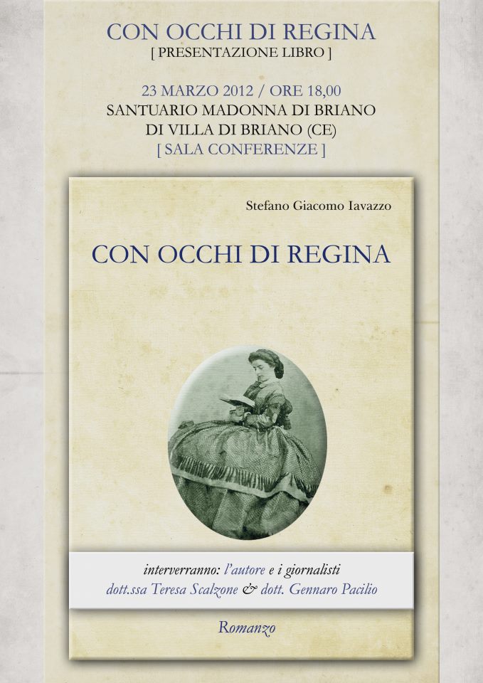 Bisogna dire che con questo romanzo storico, “Con occhi Regina”, lo stile letterario di Stefano Giacomo Iavazzo ha trovato una profonda maturazione. Avvia il suo percorso maneggiando una poetica sottile che dispone di proprietà illuminanti e a tratti vagamente misteriose. Le sue precedenti opere, infatti, per chi già lo conosce, poggiano su lavori introspettivi. Ragioni al lumicino e Il vizio del lombrico, per esempio, sono un perfetto amalgama di esplorazioni psicologiche, di incursioni mirate nei labirinti della coscienza, con uno stile letterario spontaneo e ricercato, ad un tempo.