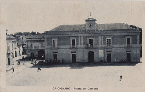 Cartolina d’epoca della Collezione di Salvatore Pizzo, risale agli anni ’30 del secolo scorso. (Piazza del Comune Gricignano d’Aversa)