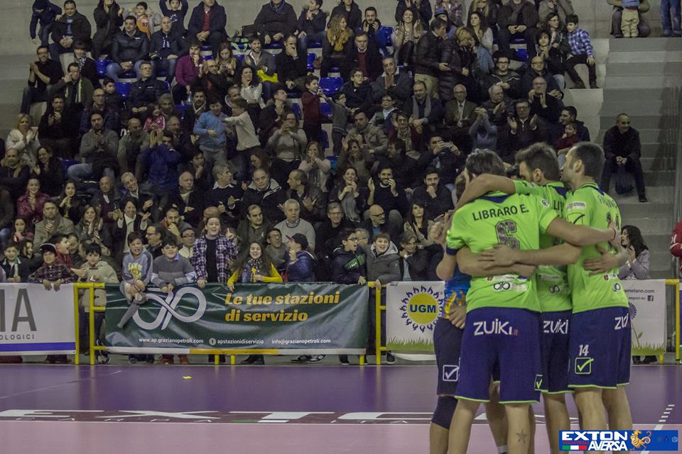 Ed il 3-0 è la sintesi altrettanto perfetta di quanto accaduto in campo. Il sestetto di coach Draganov ha dominato dal primo all’ultimo set senza mai mettere a rischio un match dettato dalla volontà unica di continuare a vincere per mantenere il secondo posto in classifica e prendere le distanze dalle inseguitrici. Offrendo una prova di squadra che ha visto protagonisti tutti e non il singolo, con giocate di gran classe che hanno esaltato il pubblico del PalaJacazzi, ancor più numeroso del solito: «Trovare le parole per definire il nostro pubblico e ringraziarlo – dice il presidente Di Meo – diventa ogni volta più difficile. Ogni giorno i nostri tifosi riescono a stupirci al punto da non riuscire a trovare più le parole e lasciarci a bocca aperta proprio come accaduto sabato quando, ancor prima che iniziasse la gara ed oltre la fine, hanno accompagnato la squadra ad una vittoria che per noi è importantissima. E’ un pubblico che merita la serie A ed io, lo prometto, ce la metterò tutta per fare diventare realtà questo bellissimo sogno». Tra sogno e realtà non c’è differenza alcuna. In casa della Exton Volleyball Aversa si lavora sodo quotidianamente per raggiungere gli obiettivi prefissati continuando a vincere e confermandosi tra le corazzate del girone C del campionato di serie B1 maschile di pallavolo: «Dopo quindici giornate continuiamo a marciare – prosegue il numero uno normanno – seguendo la nostra tabella. Il gioco migliora sempre più e la squadra cresce, dimostrando di essere un gruppo compatto e ben assortito nel quale ognuno, entrando dalla panchina o stando in campo dal primo minuto, sa rendersi fondamentale come Antonio Di Santi, autore sabato scorso di una vera e propria di forza. E’ stata una serata bellissima ed una grandissima prestazione dei ragazzi». In effetti, sabato scorso non è mancato nulla. La presenza dei bimbi e dei responsabili Unicef ha reso il tutto ancor più speciale nella preponderanza di quell’aspetto sociale cruciale per una società come la Exton Volleyball Aversa che sta dimostrando di essere al fianco di tutti. E da oggi si torna a lavorare. Naturalmente per preparare la prossima trasferta di Potenza ma anche per la Final Four: «Da sabato a disposizione dei nostri tifosi – conclude Sergio Di Meo – ci sono gli abbonamenti per assistere alle due giornate di Final Four nazionali di Coppa Italia che si giocheranno al PalaJacazzi i prossimi 3 e 4 aprile. Sarà un evento storico che ha già richiamato tanta attenzione attorno alla nostra società che vuol premiare i tifosi e la città di Aversa portandoli al centro della Nazione non per i soliti fatti noti alla cronaca ma per la forza di un territorio che ha nello sport un volano importante per riscattarsi. Sarà possibile acquistare gli abbonamenti in prevendita fino al prossimo 28 marzo, consiglio che do vivamente a tutti coloro che vorranno assicurarsi un posto in prima fila perché i primi riscontri, fortunatamente, ci dicono che potrebbe essere un evento sportivo senza precedenti, di pubblico ed organizzazione».