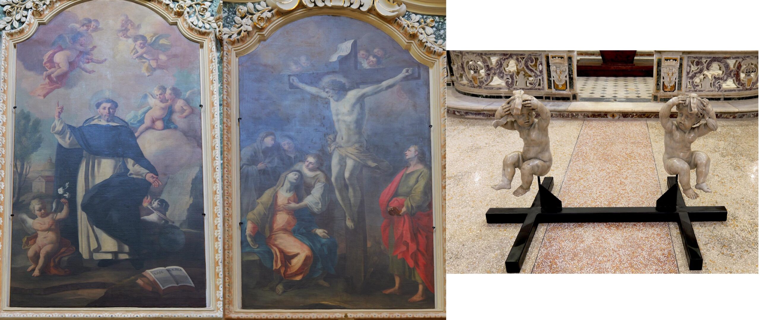 Nello specifico, ad essere stati restituiti sono due sculture marmoree del XVII secolo (rappresentati due Putti collocati originariamente ai lati del tabernacolo del maestoso altare del presbiterio del Tempio domenicano) e due dipinti del XVIII secolo di Francesco De Mura, rappresentanti la Crocifissione con la Beata Vergine e Santi, e San Domenico di Guzman, fondatore dell’Ordine dei Frati Predicatori. Si tratta di espressioni d’arte religiosa di ottima fattura che, come detto, provenivano proprio dalla chiesa di S. Domenico, altamente significativa del patrimonio storico artistico non solo locale, ma nazionale.