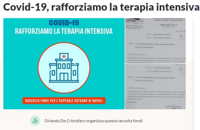Di seguito il link per la raccolta fondi Covid-19, rafforziamo la terapia intensiva