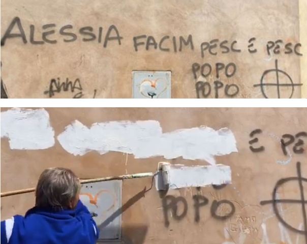 La scritta, subito condannata dall’amministrazione comunale, è stata prontamente rimossa. Il matrimonio di Alessia Cinquegrana con il fidanzato Michele Picone, sarà celebrato questo pomeriggio alle 16.30 dalla Vicesindaco Federica Turco.
