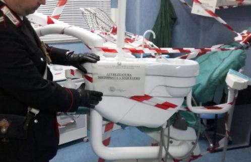 Sequestrata l’attrezzatura: un riunito odontoiatrico, un miscelatore automatico, un ablatore ad ultrasuoni per la pulizia dei denti nonché frese, punte, cementi per calchi e una lampada foto-polimerizzatrice, quest’ultima se usata senza le dovute cautele potrebbe provocare anche danni alla retina.