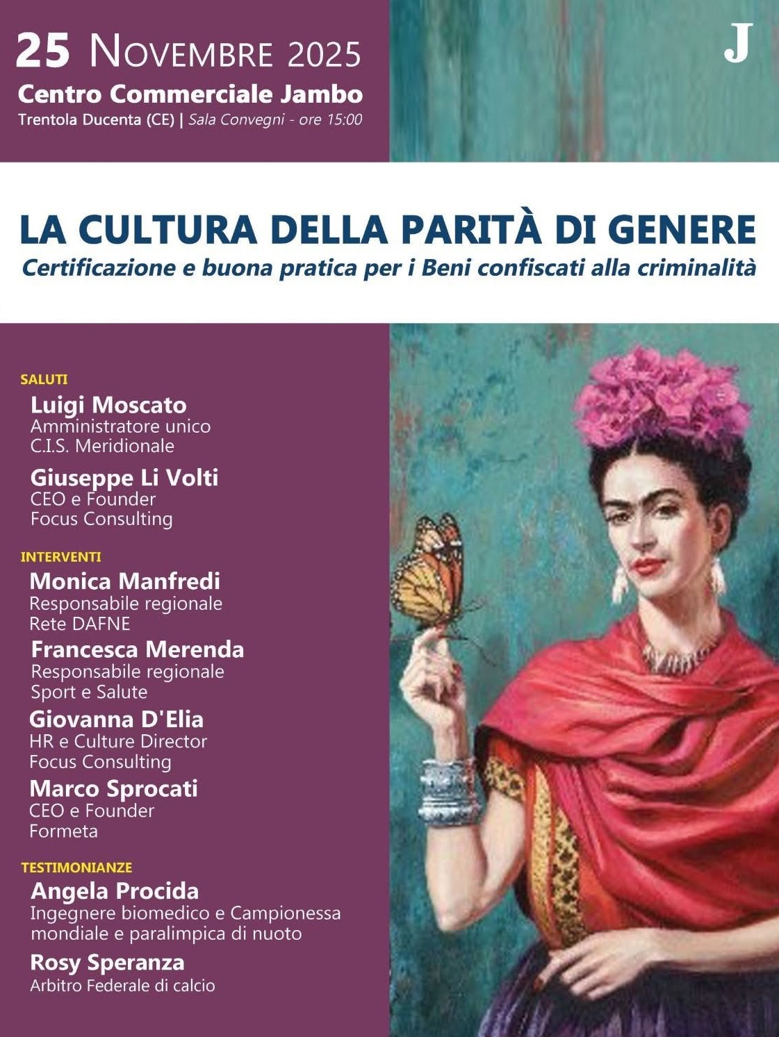 Il Convegno dal tema “La Cultura della Parità di Genere” in programma oggi – martedì 25 novembre, alle ore 15, presso la Sala Convegni del Centro commerciale Jambo a Trentola Ducenta, appuntamento che giunge dopo qualche giorno dalla Giornata Internazionale dell’Uomo (19 novembre) e  in occasione della Giornata internazionale per l’Eliminazione della violenza contro le Donne.