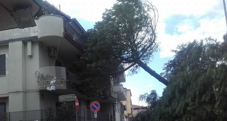 A Caivano tanta la paura nella scuola elementare Bruno Ciari, dove i bambini sono scappati nei corridoi in attesa che si placasse la tromba d’aria.