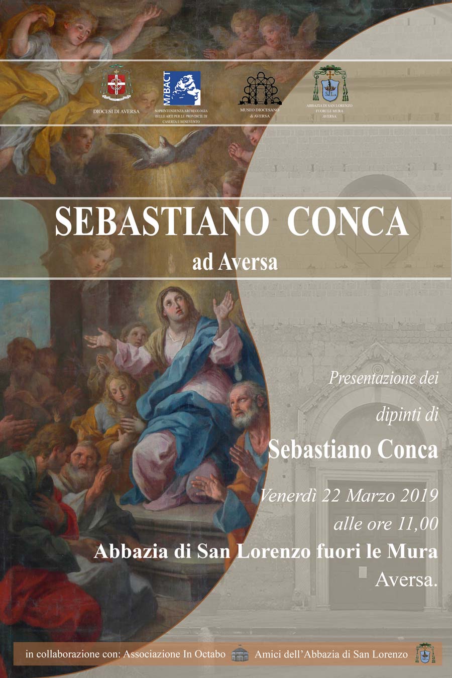 Venerdì 22 marzo alle 11, presso il complesso abbaziale di San Lorenzo fuori le mura di Aversa, avrà luogo la presentazione dei dipinti di Sebastiano Conca, restituiti dalla Soprintendenza Archeologia, Belle Arti e Paesaggio, alla chiesa abbaziale di San Lorenzo, per la quale il pittore gaetano le eseguì nel 1761. Organizzato in collaborazione con la Diocesi di Aversa e curato dal responsabile diocesano per i beni culturali – nonché parroco della Basilica di San Lorenzo – mons. Ernesto Rascato, l’evento sarà presieduto dal Soprintendente, arch. Salvatore Buonomo, e dal Vescovo di Aversa, mons. Angelo Spinillo. Le quattro grandi pale d’altare (circa 400x250cm), raffiguranti la Natività, la Pentecoste, San Mauro che guarisce gli storpi e I Santi Benedetto e Scolastica sono tornate nella loro sede originaria, dopo essere state custodite per lungo tempo presso il laboratorio di restauro del Palazzo Reale di Caserta, e dopo essere state oggetto di un intervento di restauro che ne ha riportato alla luce i valori pittorici originari. Nella stessa occasione si presenteranno gli esiti del restauro, svolto sotto l’alta sorveglianza della Soprintendenza di Caserta e Benevento, delle altre cinque tele eseguite dal Conca per Aversa, originariamente destinate alla chiesa del Monastero delle Clarisse dello Spirito Santo ed oggi conservate nella chiesa parrocchiale di San Michele Arcangelo alla Ferrovia, tele raffiguranti: la Pentecoste, l’Immacolata Concezione, San Francesco che riceve le stimmate, Santa Chiara e le clarisse, Santa Margherita da Cortona. La restituzione dei quattro dipinti alla Basilica di San Lorenzo segna un decisivo passo, operato dalla stessa Soprintendenza grazie alla sensibilità della Diocesi di Aversa, verso la riappropriazione, da parte delle comunità, dei valori identitari esemplarmente rappresentati dal patrimonio storico-artistico. Il restauro dei dipinti della Chiesa di San Michele alla Ferrovia, realizzato con il contributo dell’omonima comunità parrocchiale, manifesta la cura della bellezza del patrimonio culturale ecclesiastico. Dopo i saluti istituzionali, Paola Coniglio, funzionario storico dell’arte della Soprintendenza,  interverrà con un approfondimento volto ad inquadrare i due cicli pittorici aversani nell’ambito della lunga carriera del Conca; i restauratori Decio Carelli e Simona Anastasio illustreranno gli interventi di restauro effettuati sui dipinti.