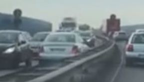 Il video è stato segnalato da un utente su un gruppo social. Nel filmato si vede la vettura che cerca di farsi strada tra le auto che arrivano nel senso inverso. Fortunatamente non si sono registrati né morti né feriti.