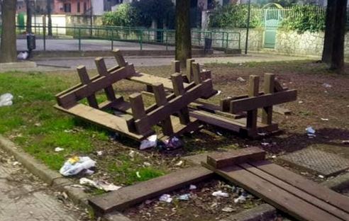 Sono di nuovo entrati in azioni i vandali a Parete, i quali hanno completamente distrutto panchine e servizi igienici in Piazza Massimo Troisi.