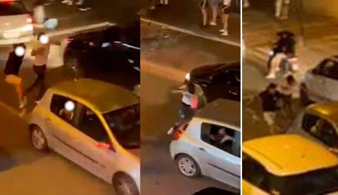 La zuffa, con tanto di “strascino”, è stata ripresa con il telefonino da alcune persone di passaggio.