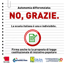 L’intento, quindi, non è solo quello di raccogliere le firme ma anche di informare i cittadini e invitarli alla partecipazione, per cancellare una legge che esaspera il divario tra Nord e Sud del Paese, tra zone metropolitane e aree interne, che acuisce le diseguaglianze e che, dunque, va contrastata con ogni strumento democratico a disposizione.