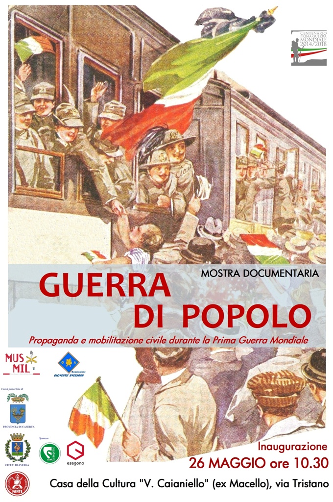 Nella casa della Cultura “V. Caianiello” sabato è stata inaugurata la mostra “Guerra di Popolo. Propaganda e mobilitazione civile durante la Prima Guerra Mondiale”, organizzata dal Civico Museo di Storia Militare in occasione del Centenario della Grande Guerra. Tematica principale dell’esposizione è quella delle attività che si svolsero ad Aversa durante il periodo della Grande Guerra, in particolare relative alle opere di propaganda, all’assistenza ai feriti ed alle famiglie dei combattenti, alle celebrazioni della vittoria, gli strumenti furono molteplici, dai manifesti murali alle cartoline propagandistiche, dai tradizionali comizi pubblici alle lotterie benefiche, coinvolgendo gli apparati dei Comitati Civili e della Croce Rossa Italiana. Aversa emerse quale polo di riferimento per gli abitanti dei centri circostanti. L’iniziativa ha ottenuto il patrocinio del Comune di Aversa, della Provincia  e dell’Associazione Nazionale del Fante, è inserita nel calendario ufficiale degli anniversari di rilevanza nazionale predisposto dalle Presidenza del Consiglio dei Ministri e si fregia della concessione del logo ufficiale del Centenario, resterà visitabile fino al 17 giugno. L’allestimento è stato curato dal direttore del Museo Salvatore de Chiara e dal professore Salvatore Palladino, ed è reso possibile anche dalla disponibilità della Esseprint, ed alla collaborazione di Giovanni Bo, Presidente della Piccola e Media Impresa di Confindustria di Terra di Lavoro, e del gruppo Esagono, che hanno confermato il proprio impegno per la promozione della cultura.