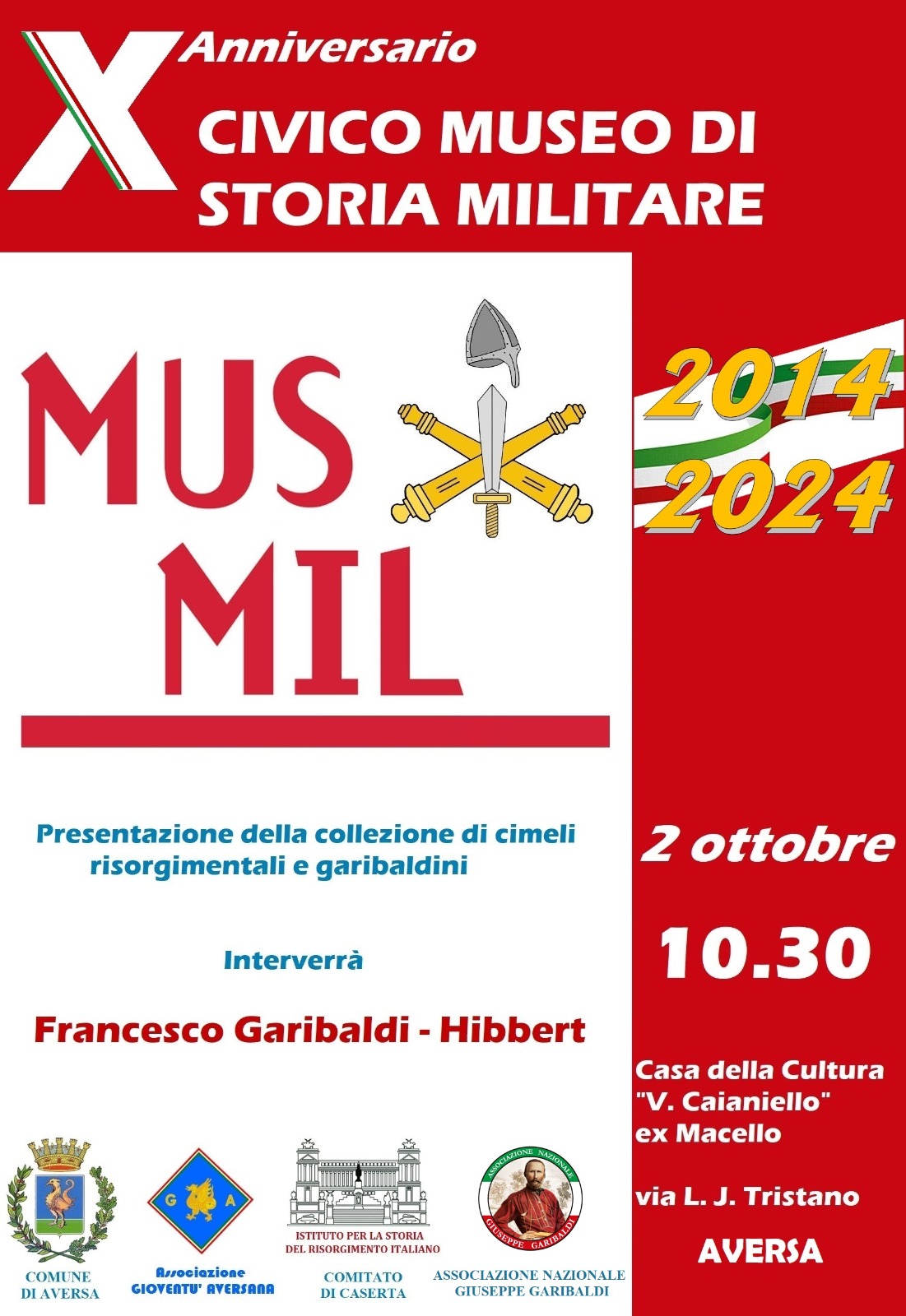 Mercoledì 2 ottobre, alle 10.30, all’interno della Casa della Cultura “Caianiello”, nell’ex macello ad Aversa, sarà inaugurata la nuova sezione risorgimentale del Civico Museo di Storia Militare di Aversa, in occasione dei festeggiamenti per il decimo anniversario della istituzione del Museo.
