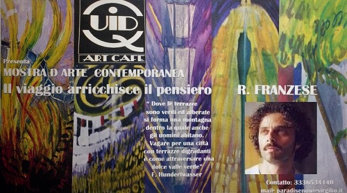 Si terrà lunedi 1 maggio l’inaugurazione dell’installazione d’arte di Rocco Franzese, “Il Viaggio arricchisce il Pensiero”. L’iniziativa si svogerà a partire dalle 19.30 presso il “Quid Art Cafè” di Frattamaggiore. Dopo un viaggio fatto a Vienna presso Hunderwasserhouse, l’artista ha trasferito sulla tela le sue sensazioni visive ed emotive. Da questa esperienza è nata una mostra che rappresenta l’esigenza di creare un legame con l’esperienza culturale politica dell’autore F.HunderWasser.