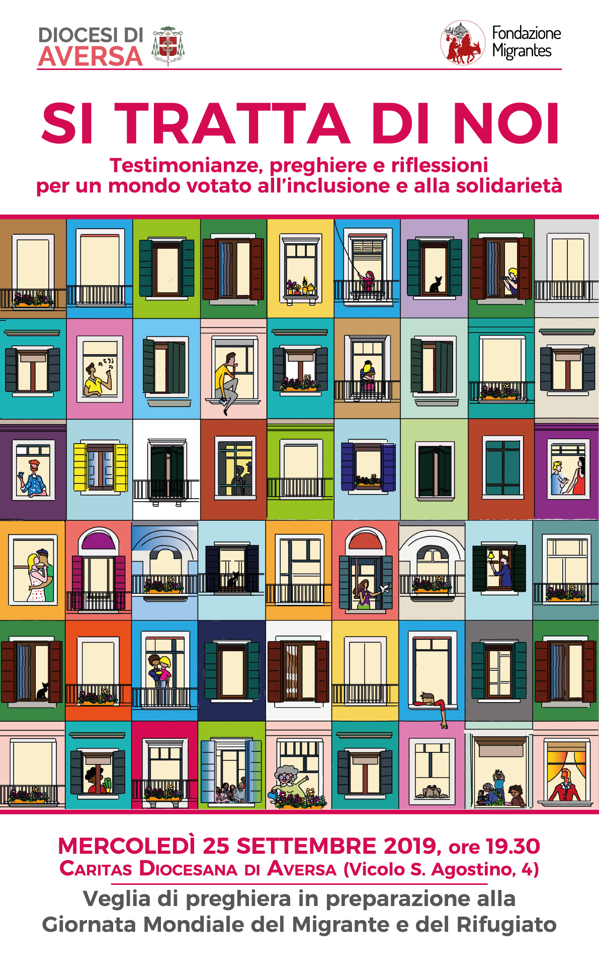 In preparazione alla 105a Giornata Mondiale del Migrante e del Rifugiato, che sarà celebrata in tutto il mondo domenica 29 settembre, gli uffici Migrantes e Caritas della diocesi di Aversa organizzano la veglia di preghiera “Si tratta di noi – Testimonianze, preghiere e riflessioni per un mondo votato all’inclusione e alla solidarietà”.
