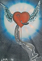 Ho deciso di effigiare una strada ricca di ostacoli che si formalizzano nelle buche. Queste ultime, in senso lato, assumono le sembianze dei possibili cedimenti che possono avere origine nel fulcro delle fermezze e nella volontà di ognuno di noi. L’uomo che cammina, sta a significare tutta la generazione dei giovani che hanno voglia di dire no, di ribellarsi a ciò impongono i trend contemporanei. Il cuore, invece, è l’emblema della scelta fatta con amore, la volontà di perseguire ciò che è giusto; le ali che vi sono legate rendono concreto il desiderio del bene che va contrastare le ferite presenti sul muscolo centrale del corpo umano. Sono proprio quelle lacerazioni a constatare le delusioni che possiamo incontrare sul nostro cammino I raggi di luce rappresentano l’uscita dal tunnel del dolore e dello sbaglio.