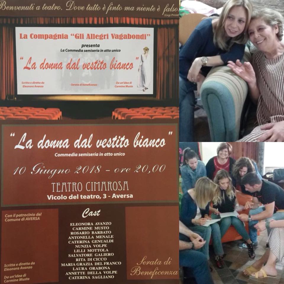 “Benvenuti a teatro. Dove tutto è finto ma niente è falso”. Così, con questa citazione di Gigi Proietti, la compagnia teatrale “Gli allegri vagabondi”, con la collaborazione dell’autrice Eleonora Avanzo e l’idea di Carmine Musto, presenta la commedia teatrale “La donna dal vestito bianco”. Uno spettacolo teatrale che si pone come obiettivo principale quello di affrontare temi al centro della società odierna traslati in un’ambientazione che risale agli anni ‘60 del ‘900.