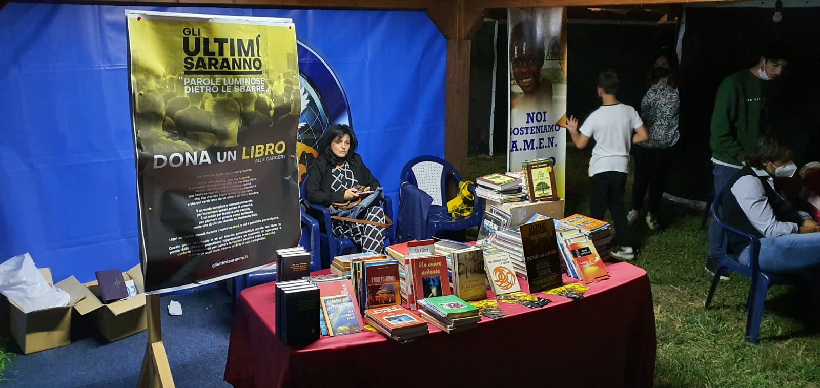 Un altro momento significativo ha visto la partecipazione di Raffaele Bruno, fondatore di un collettivo di artisti che promuove il teatro (e non solo) nelle carceri italiane. Bruno era accompagnato dalla moglie Federica, che cura un laboratorio teatrale nella sezione femminile del carcere di Salerno, e da Alessandro Freschi, videomaker e volto noto di Casa Surace. Per l’occasione è stata presentata l’iniziativa “dona un libro” per alimentare le biblioteche carcerarie: chiunque può donare un libro (usato o nuovo) con un personale messaggio di speranza ai potenziali lettori. La risposta è stata eccezionale e durante la manifestazione sono stati raccolti centinaia di libri, che saranno destinati alla comunità carceraria di Santa Maria Capua Vetere, recentemente balzata alla cronaca. I libri saranno consegnati al carcere lunedì 26 luglio p.v., durante lo spettacolo “la lupa nella gabbia”. Tale è stata la risposta all’iniziativa che presso la chiesa Nuova Pentecoste è stato istituito un centro di raccolta permanente, ove chiunque può lasciare il suo libro dono.