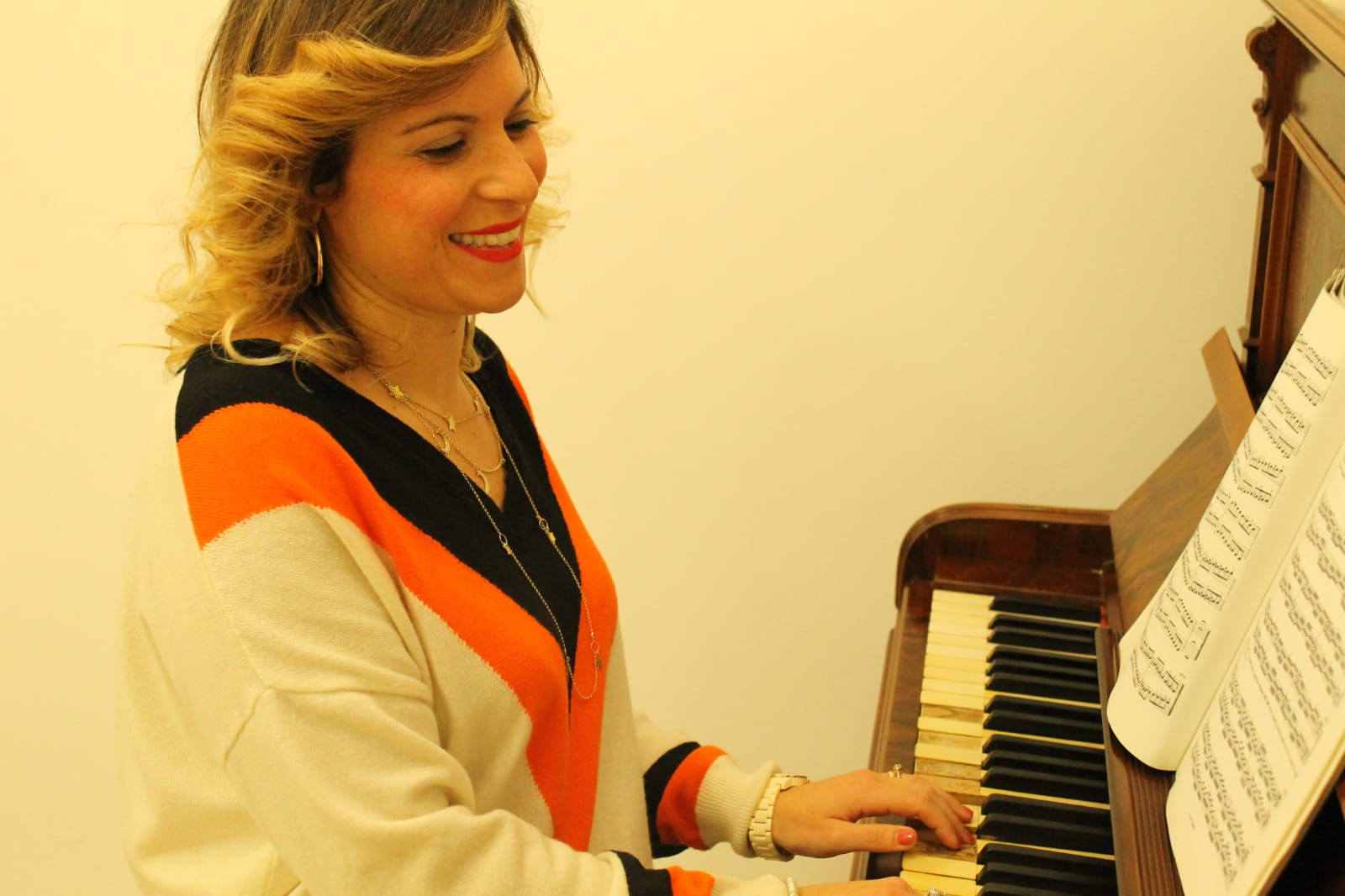 “Infatti – afferma l’artista – a casa non mancava mai un karaoke dove poter cantare oppure una tastiera dove poter suonare. All’età di 8 anni ho iniziato le mie prime lezioni private di pianoforte e all’età di 12 anni ho tentato l’esame di ammissione al conservatorio San Pietro a Majella di Napoli e fui ammessa. Fui felicissima e lì studiai fino al mio diploma in pianoforte. Ricordo quando suonai per la prima volta nella Sala Scarlatti al Conservatorio. Provai un’emozione indescrivibile.”