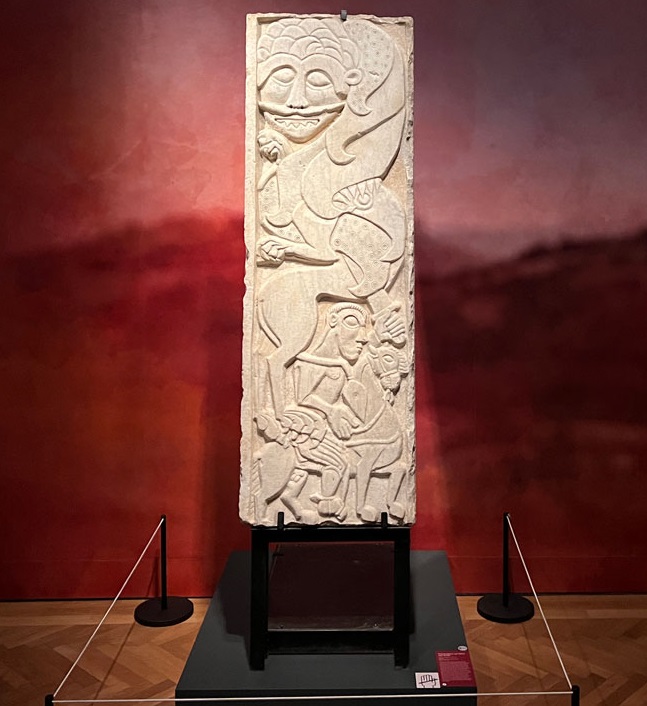 “Si tratta della preziosa lastra marmorea di committenza normanna, con influenza germanica, che probabilmente richiama il tema della saga nordica del cavaliere Sigfrido e del drago Fafnir”, spiega Mons. Ernesto Rascato, direttore del Museo Diocesano di Aversa. “Possiamo dunque parlare di influenza normanna con reminiscenze nordiche, in un contesto cristiano. Per la sua valenza artistica, eccezionale e rivoluzionaria della Rinascita dell’inizio del secondo millennio, il prof. Ferdinando Bologna l’ha definita “quasi un Picasso medievale”.