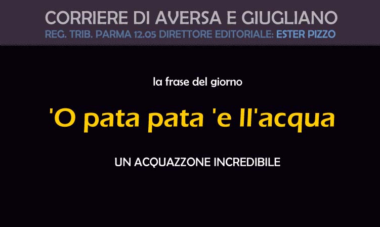 frase del giorno O pata pata e llacquaUn’espressione dialettale onomatopeica, utilizzata per indicare l’arrivo di un forte temporale. L’origine etimologica si fa risalire al termine greco antico “parapatto“, ovvero spargere tutt’intorno, ma alcuni studiosi ritengono derivi dal suono ritmico della pioggia battente “pat – pat”.