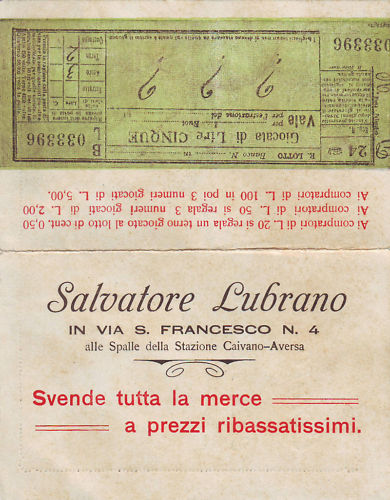 Un collezionista ci ha segnalato una "chicca" che riguarda Aversa, un biglietto del lotto che nel dopoguerra era sponsorizzato da una ditta aversana.