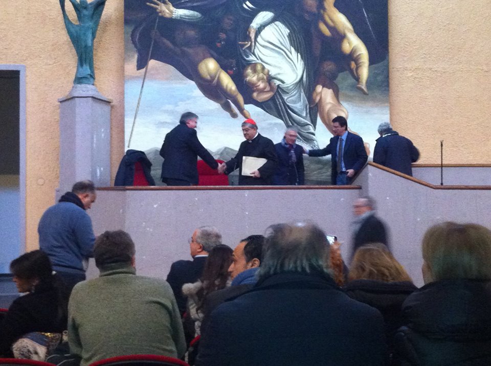 Ad esaminare il delicato compito dei professionisti della comunicazione, che devono districarsi in una complessa rete di relazioni, tenendo conto delle norme, dell’etica, delle fonti e di tanti altri elementi fondamentali per una corretta informazione, Giuseppe Blasi – presidente regionale campano dell’Ucsi, Ottavio Lucarelli – presidente dell’Ordine dei Giornalisti della Campania, Salvatore Sica – professore di Diritto Privato presso l’Università di Salerno, e Don Tonino Palmese – Vicario Episcopale per la carità della Diocesi di Napoli. L’incontro si è concluso con le parole del Cardinale Crescenzio Sepe, che ha detto ai tanti giornalisti presenti: «anche Gesù era un comunicatore, egli ha comunicato attraverso il vangelo, e la chiesa senza la comunicazione sarebbe un’isola morta. La questione etica della comunicazione è fondamentale, voi siete come dei sacerdoti. Il vostro compito è talmente alto che è sacro, avete una missione pertanto siete dei missionari.»